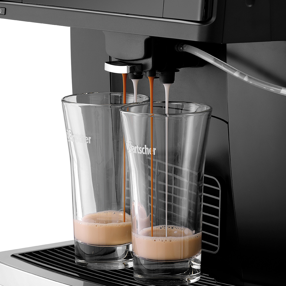 Ein echtes Leistungszentrum in Sachen Kaffeevielfalt. Die maximale Leistung pro Stunde beträgt bis zu 40 Tassen à 120 ml Café Crema. Die gesamte Tagesleistung der verschiedenen Kaffeespezialitäten liegt bei maximal 80 Tassen. Der höhenverstellbare Auslauf ermöglicht ein sauberes Arbeiten.