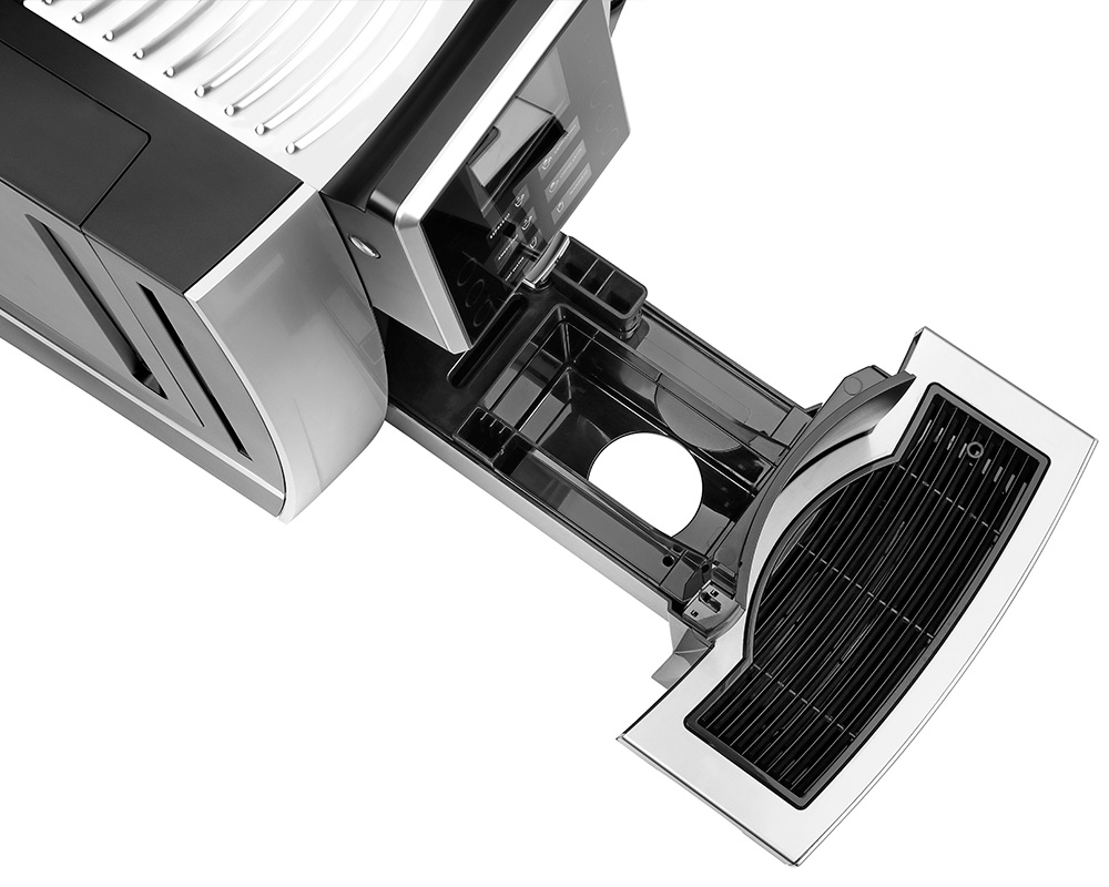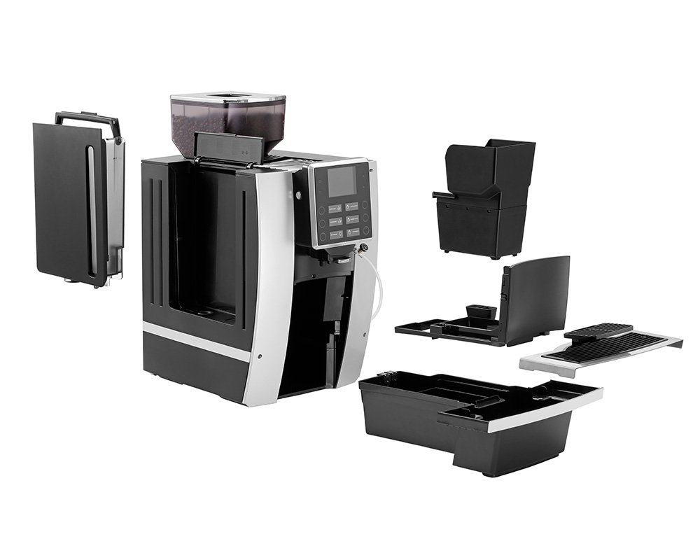 Der extragroße Behälter für Kaffeebohnen fasst ca. 1.000 g und ist damit ideal für den effizienten Einsatz in Cafés, Büros und Kantinen. Mit der zusätzlichen Kaffeepulver-Option können seltenere Kaffeewünsche wie z. B. entkoffeinierter Kaffee tassenweise im Handumdrehen serviert werden.