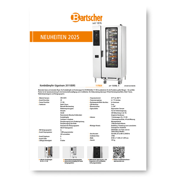 Unser umfangreiches Produktsortiment bietet eine Lösung für alle Bedürfnisse. In diesem Flyer finden Sie die Bartscher Neuheiten 2025.
